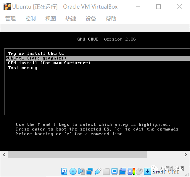 2-7、启动虚拟机,并且选择Ubuntu启动盘