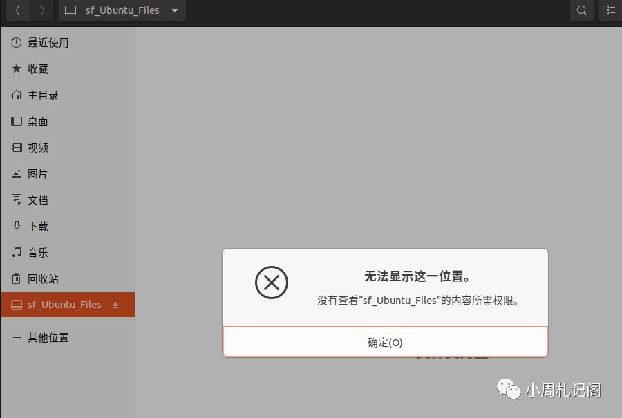 在用户目录下,可以看到共享目录,但是无法访问,所以需要进入虚拟机系统终端进行设置赋予权限。