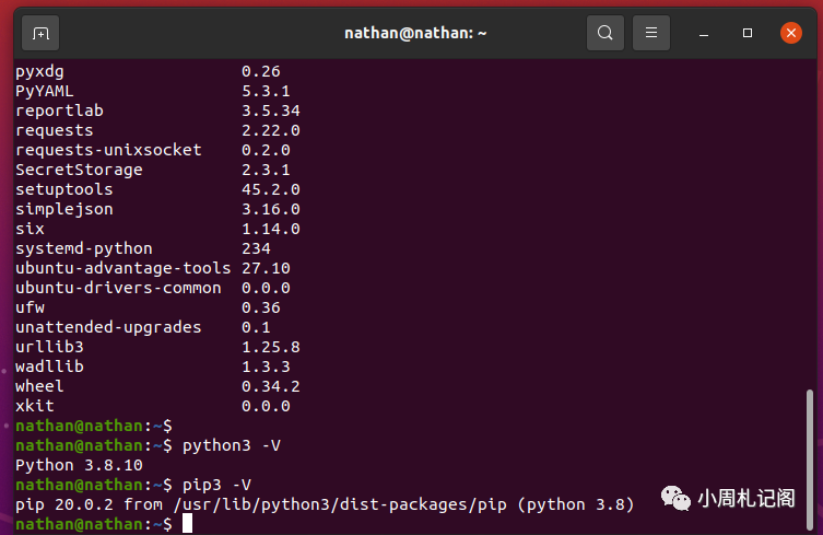 🔔:nathan为系统安装时设置的用户名,注意更改为自己设置的用户名。