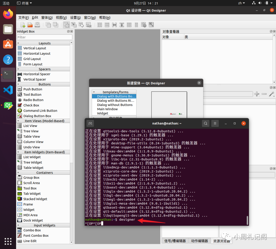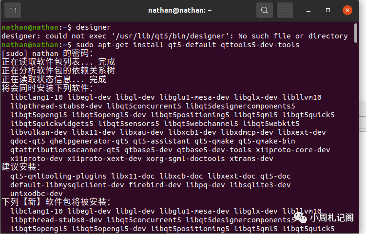 在终端中输入designer后,出现无法打开并且有相对应的报错,可以尝试输入以下命令进行重新安装,注意需要获得sudo权限。