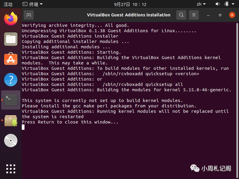 等待安装完后,键盘输入Enter即可退出,重新启动就能够正确安装增强功能。
