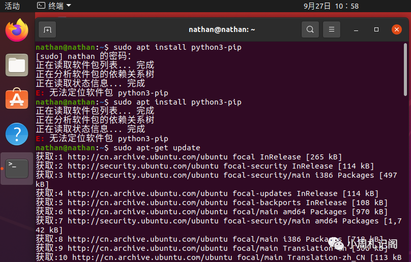 Ubuntu安装pip时出现无法定位软件包问题,一般会在新安装的系统出现这种情况,只需要执行命令: