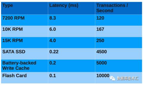 传统的机械磁盘fsync的代价很高,如下表所示: