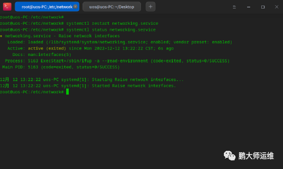 8、或者使用/etc/init.d/networking restart重启服务