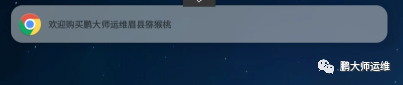 在桌面顶部会弹出消息框,内容为“欢迎购买鹏大师运维眉县猕猴桃”