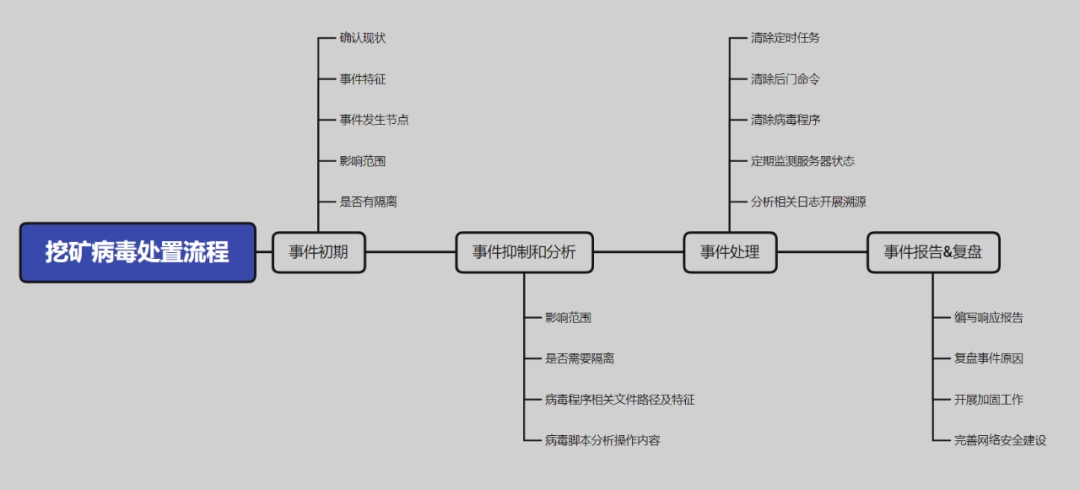 实际应急响应处置过程中都在和时间赛跑,时间拖得越长,影响面积越大,所以在收到应急的第一时间就要了解所有的情况,比如安全日志、设备告警、异常特征、时间节点,关联哪些服务如Web、数据库,是否对外等情况,在评估完后,有个大概心理预期方向,让客户做好隔离工作,备好需要的材料才会在实际上手中更快你要查什么,才能做到短时间能定位的重要问题。比如大规模的中毒,服务器可能会存在某些共同特征,比如某台运维机保留密钥导致内网“通杀”,一套AD域环境管理员“通杀”和集群等这些作为溯源考虑的方向,大型环境可能更加复杂,溯源可能需要往前推导很多的机器,应急过程中保持良好的心态和一丝不苟的工作态度才能更好引导你开展工作。