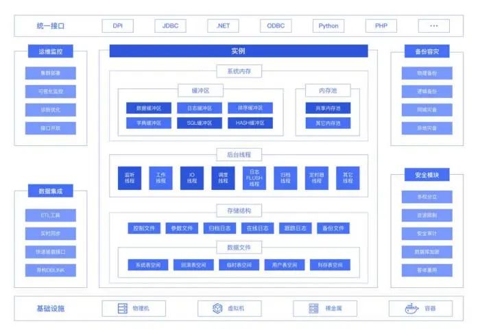 DM8采用了独特的双存储引擎架构,行存储引擎和列存储引擎可相互配合、协同工作,同时实现了计算层和存储层的分离,同一内核既支持共享存储式集群,也支持分布式事务集群。