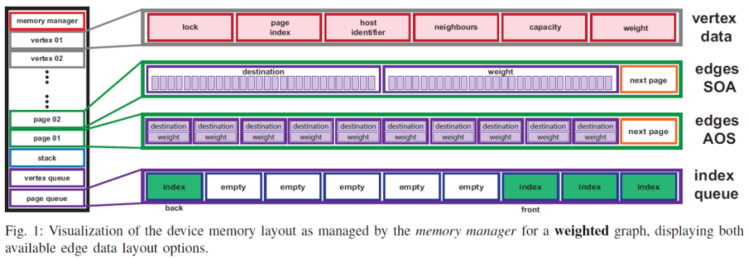 第一篇是来自奥地利格拉茨大学的研究人员发表在SC2018的文章,题目为《faimGraph: High Performance Management of Fully-Dynamic Graphs Under Tight Memory Constraints on the GPU》。此文章的主要贡献为提出了faimgraph这一面向大规模动态图的DGM解决方案。本文作者为faimgraph通过一种针对图数据特点的基于空闲队列的方法,设计了高效的存储空间重用机制。