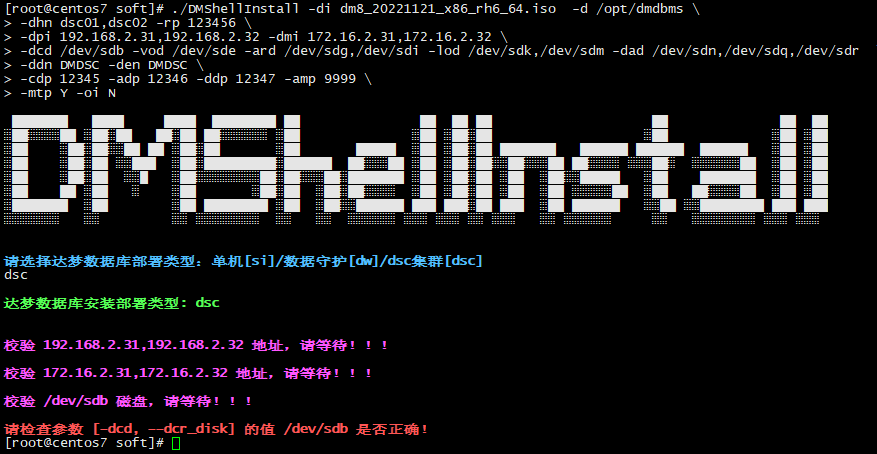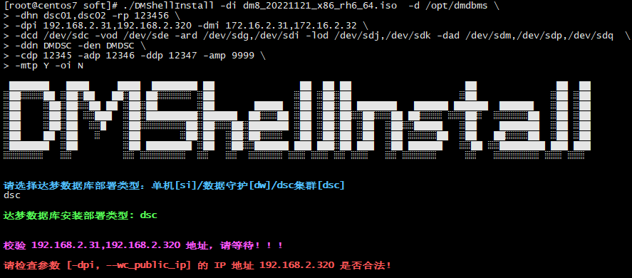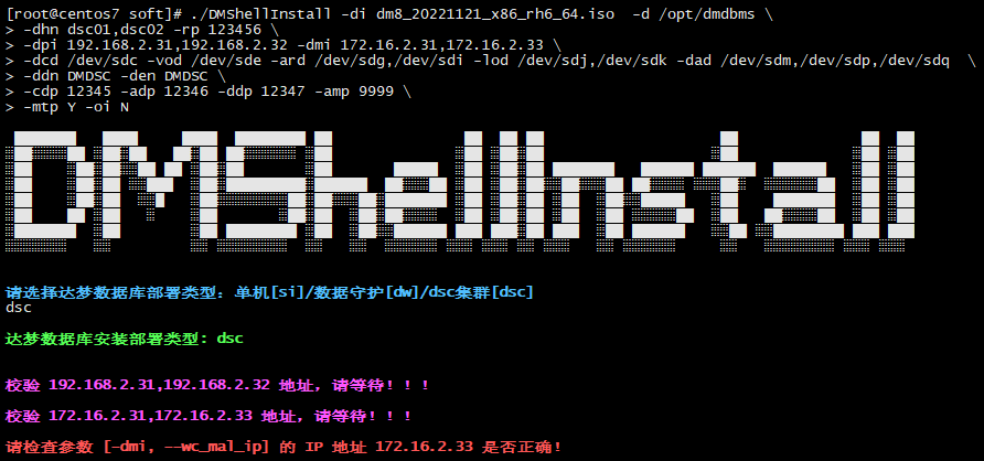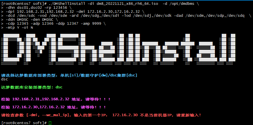 1.ip是否当前机器ip,节点1:以心跳IP为例:./DMShellInstall -di dm8_20221121_x86_rh6_64.iso -d /opt/dmdbms \