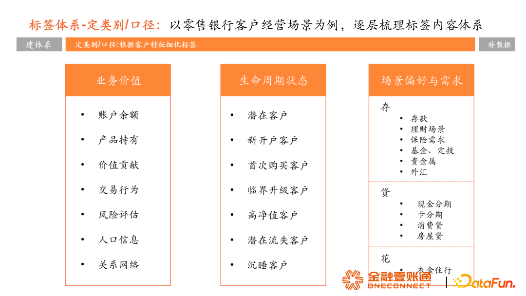 和指标的梳理过程一样,需要清晰的知道标签属于业务价值体系中的哪一类,在此基础上才能够知道标签是在哪个环节缺失并完成针对性的补充。