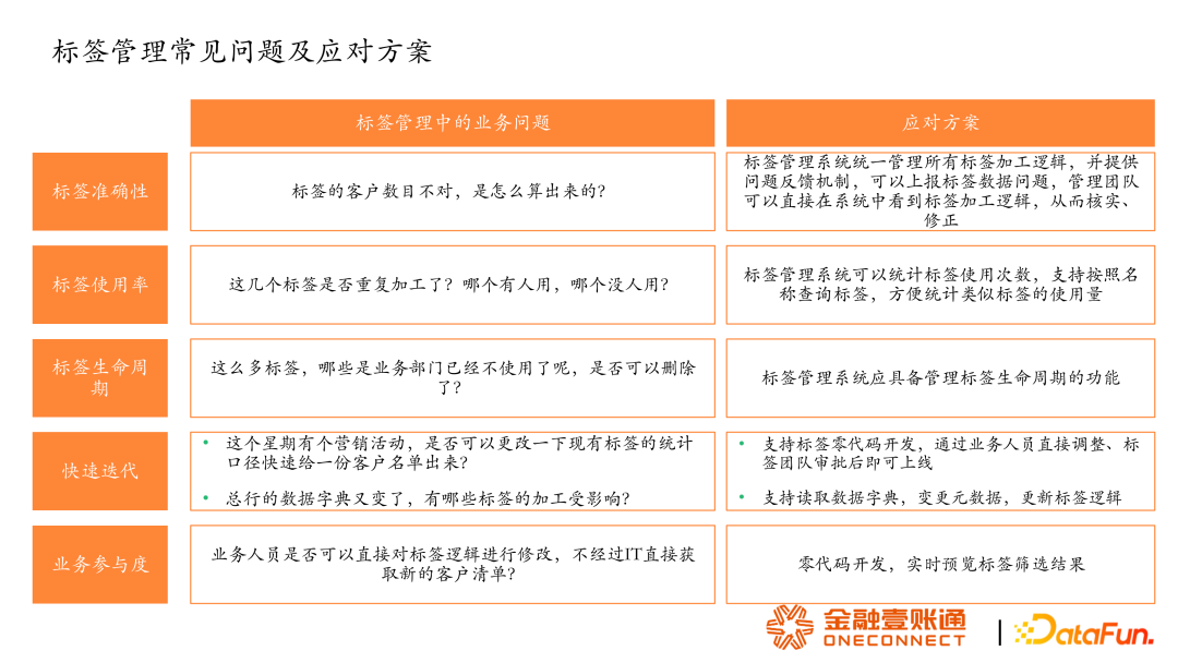 在使用标签的过程中会遇到一些常见的问题。比如标签实际匹配出的客户数目与预期不同,在业务理解下的标签圈定的实体数量是可估量的,若实际数据与估计值相差过多时,需要核实标签的计算口径。比如标签是否重复加工,需要统计标签的使用量,便于业务收集哪些标签是热门,哪些标签是好用的,哪些标签是可以被废弃的。