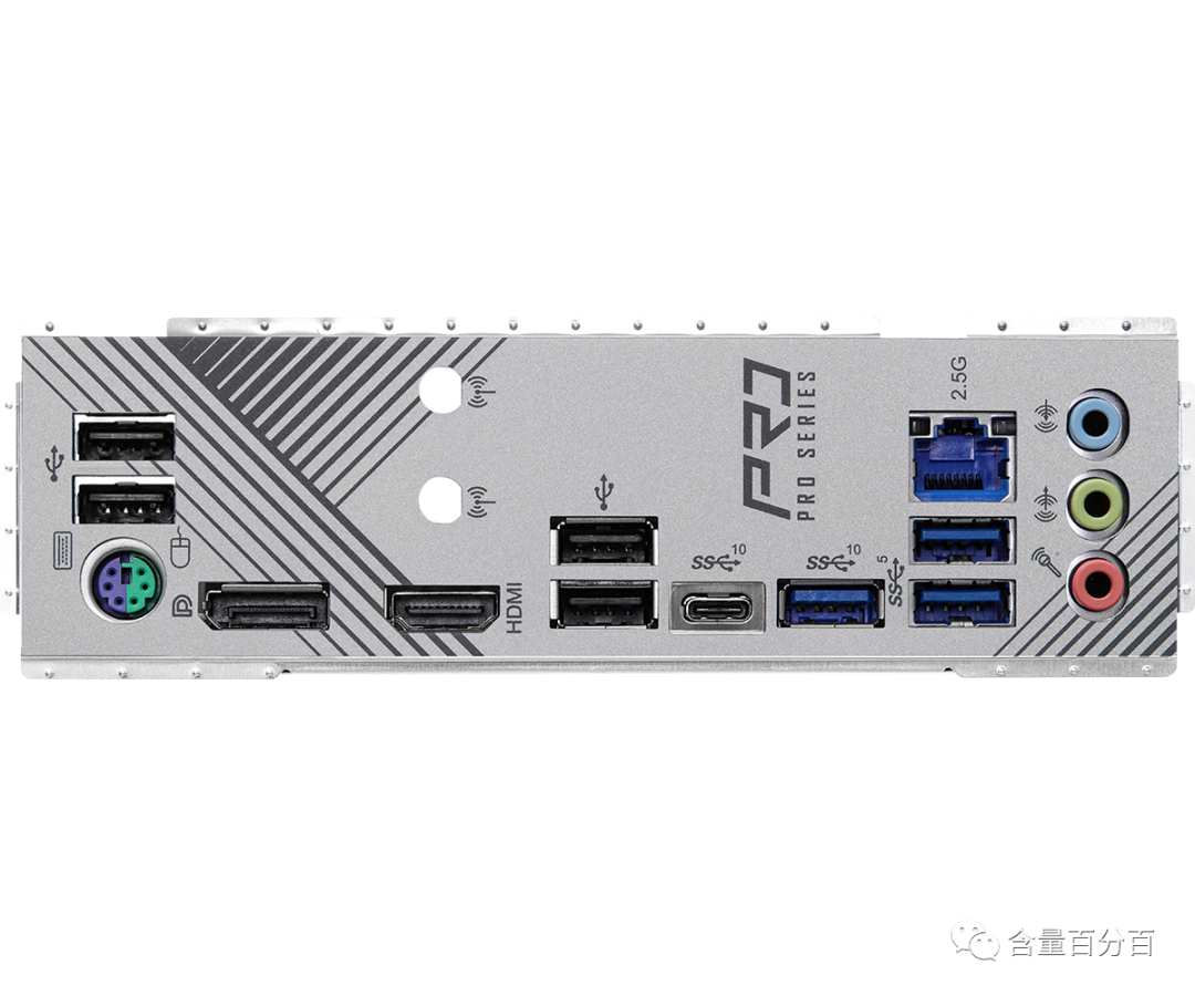 后窗I/O设计方面,主板提供了1个USB 3.2 Gen 2 Type-C接口,1个USB 3.2 Gen 2 Type-A接口,2个USB 3.2 Gen1 接口,1个DP1.4接口、1个HDMI 2.1视频输出接口,4个USB 2.0 接口。自带瑞昱Dragon RTL8125BG 2.5G网卡,音频方面提供了3个3.5mm的音频接口,同时自带1个PS/2二合一接口。