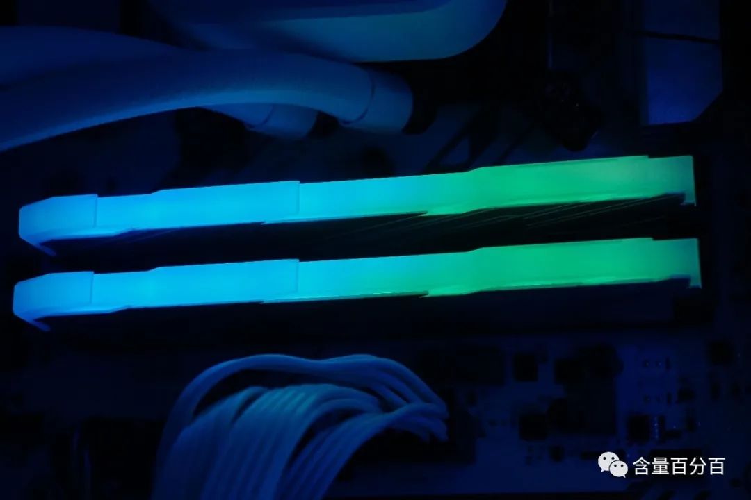 七彩虹CVN Guardian捍卫者DDR5 RGB灯条顶部的白色材质为灯带,透光性良好,整体光线发散均匀,灯光变化流畅自然。