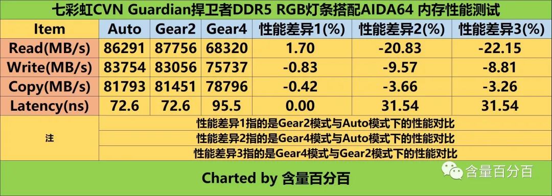 一是 Auto模式下与Gear2模式下的内存延迟Latency数值相同,而Gear4模式下的内存延迟Latency数值最大,由72.6ns大幅度拉升到了95.5ns。
