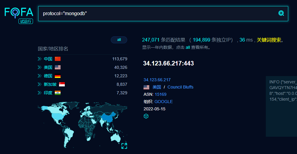 最近在看的项目源代码用到很多类型的数据库,除了上次我们讲到redis数据库,这次我又发现,除了已知的redis之外,MongoDB数据库开放27017端口,也可能造成未授权访问登录