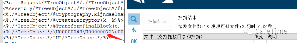那么下面我们就可以利用这两个特性对冰蝎马进行免杀处理,同样得到如下内容: