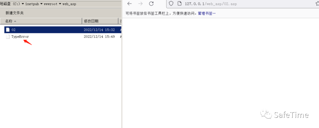 这里可以看到访问02.asp成功往目标服务器当前目录写入预先内容的TypeError.asp