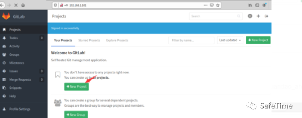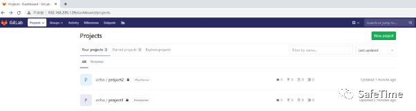 登录gitlab,创建两个project