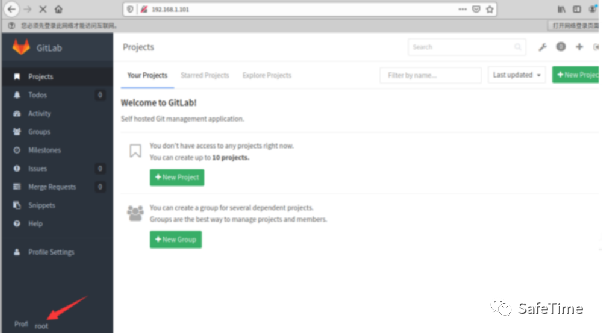 方法一:添加管理员账户,登录gitlab页面。