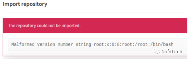 访问之前搭建好的GitLab服务器,创建一个新的项目,填写完项目名称后在一栏中选择Import project fromGitLab ,export上传我们修改后的导入包,然后就可以看到/etc/passwd文件第一行
