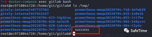 可见touch /tmp/success已成功执行: