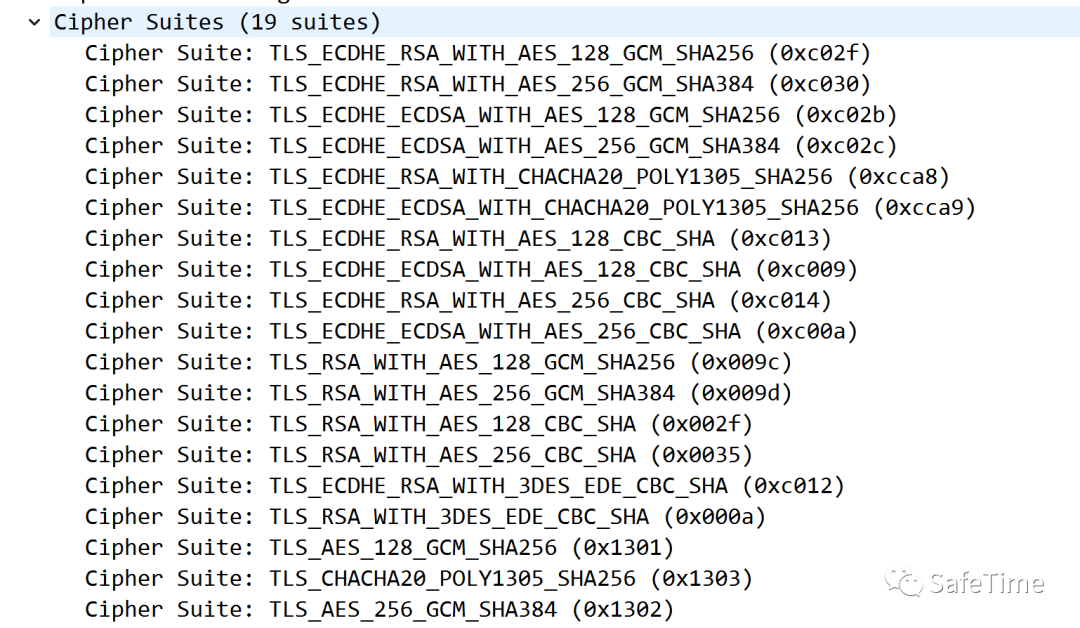如下加密算法套件有19个,根据ja3规则,每个之间用"-"连接