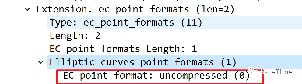 版本、可接受的密码、扩展列表、椭圆曲线密码和椭圆曲线密码格式