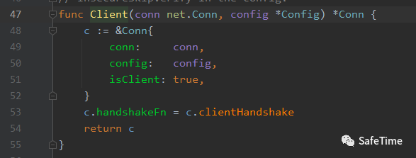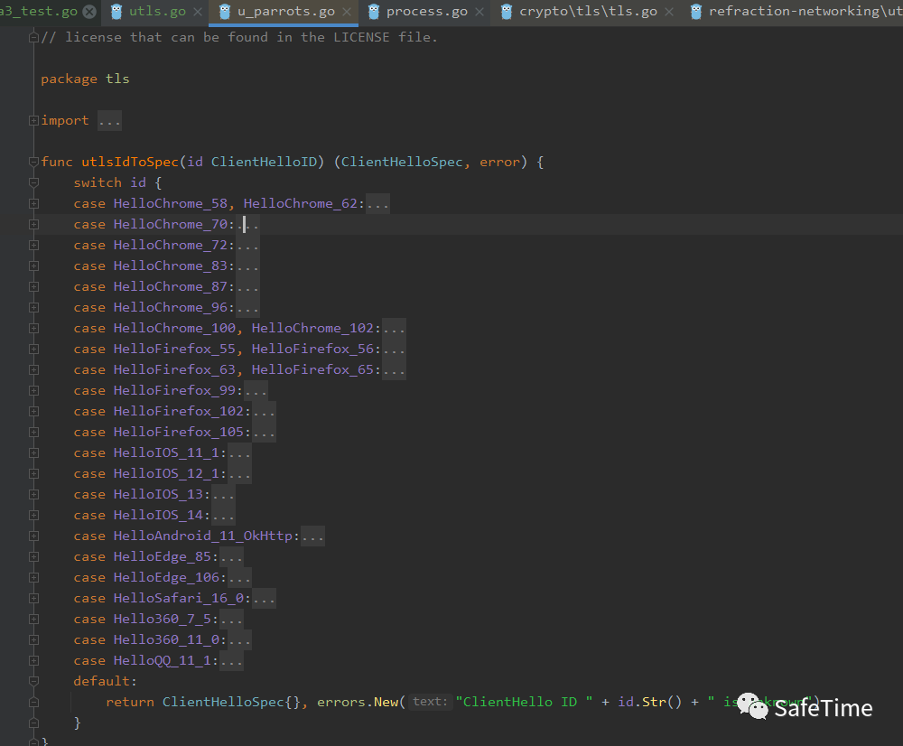 和官方库差不多的用法,如下在封装时除了conn连接和config配置以外,需要传入ClientHelloID
