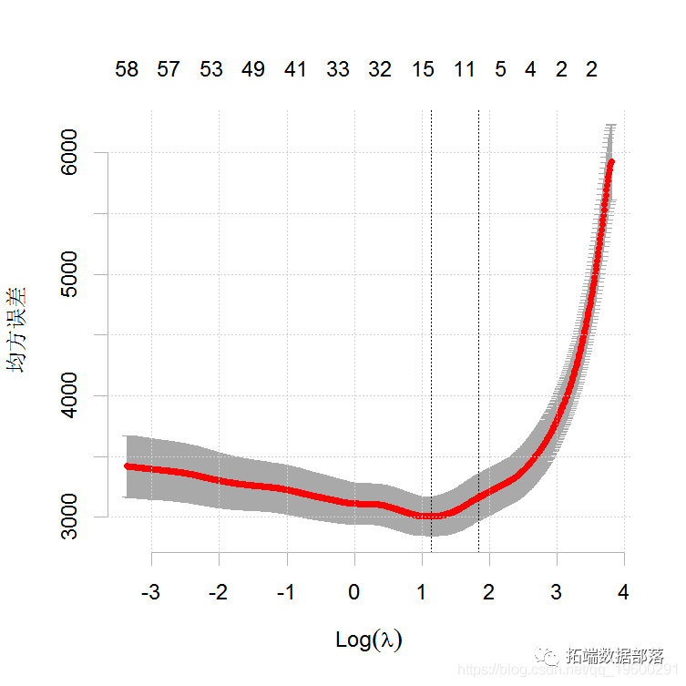得到交叉验证曲线和最小化平均交叉验证误差的lambda的值。