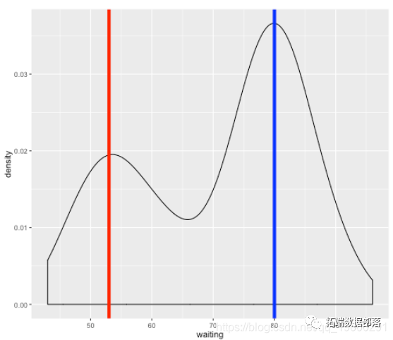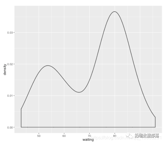 p <- ggplot(faithful, aes(x = waiting)) +