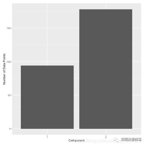 最终用户决定使用什么“阈值”将数据分配到组中。例如,可以使用0.3作为后阈值来将数据分配给comp.1并获得以下标签分布。
