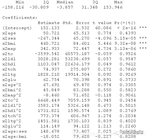 数据集有三个矩阵x、x2和y。x是较小的自变量集,而x2包含完整的自变量集以及二次和交互项。