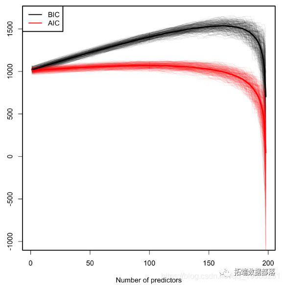, 因此,与BIC相比,它对 较复杂的模型的处罚较少。这就是为什么一些从业者更喜欢BIC进行模型比较的原因之一。BIC和AIC可以通过BIC