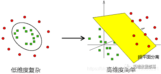 然后,SVM在较高维度的空间中绘制一条线,以最大化两个类之间的距离。将新的数据点提供给SVM后,它会计算该点落在线的哪一边并进行预测。