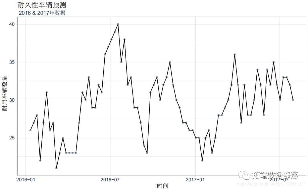 labs(title = "耐久性车辆预测", x = "时间", y = "耐用车辆数量",