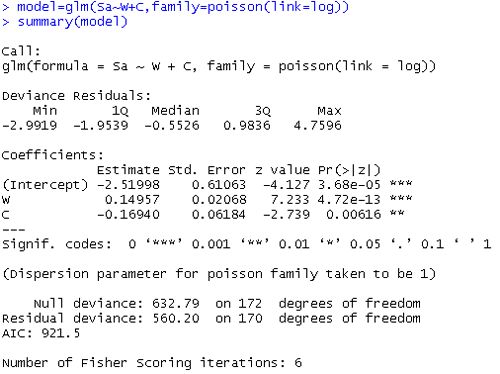 输出看起来非常像 R 中两个 OLS 回归的输出。在模型调用下方,您会发现一个输出块,其中包含每个变量的泊松回归系数以及标准误差、z 分数和 p 值系数。接下来是对应于通货膨胀模型的第二个块。这包括用于预测多余零点的 logit 系数及其标准误差、z 分数和 p 值。