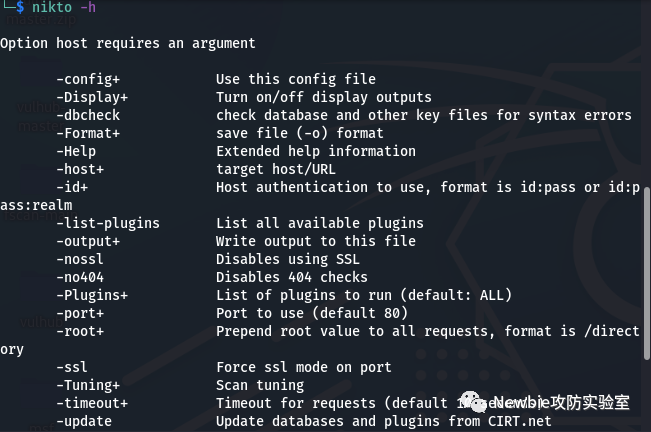 使用方法:1、 命令:nikto -update #升级,更新插件;2、 Nikto -list-plugins #查看插件;3、 Nikto -host http://1.1.1.1 #扫描目标:域名方式;4、 Nikto -host http://1.1.1.1 -output #扫描并输出结果5、 Nikto -host 1.1.1.1 -port 80 #扫描目标:ip地址加端口号6、 Nikto -host www.baidu.com -port 443 -ssl #扫描https网站7、 Nikto -host 文件名.txt #批量扫描目标8、 nmap -p80 192.168.1.0/24 -oG - | nikto -host - #利用nmap扫描开放80端口的IP段并且oG(nmap结果输出并整理)通过管道的方式“|”用nikto进行扫描9、 nikto -host 192.168.0.1 -useproxy http://localhost:8070 #利用代理进行扫描(防止IP封杀)10、 -vhost #当一个网站存在多个端口时可以使用-vhost遍历所有网站进行扫描或一个ip对应多个网站