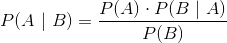 ,表示的是在事件发生的情况下事件发生的概率,由著名的贝叶斯定理,条件概率可以通过如下公式来计算: