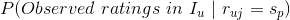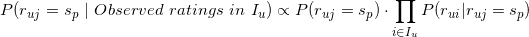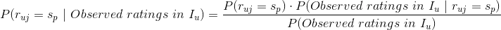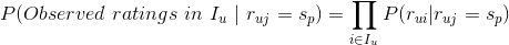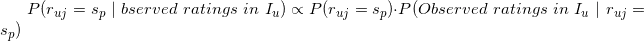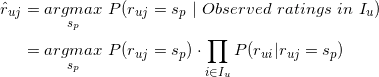 )。我们可以将这个过程理解为在用户已经有评分记录的条件下,用户对新物品的评分取集合中某个值的条件概率: