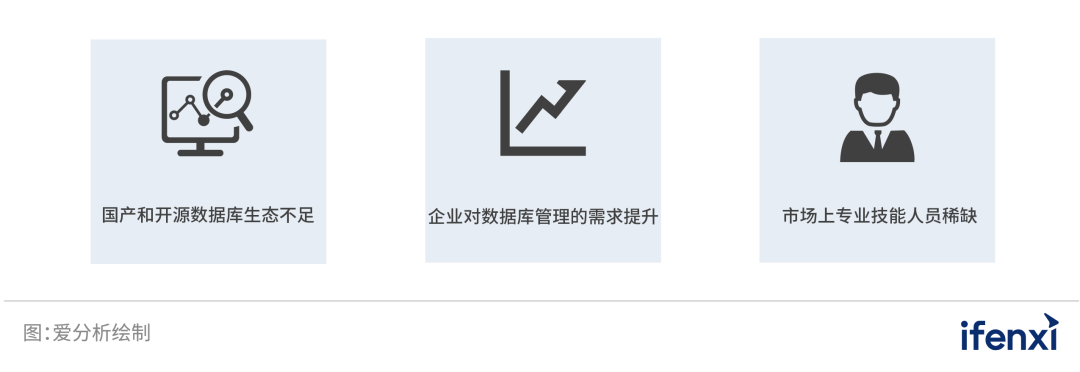 在当前全行业都在不断推进数字化转型的过程中,数据库充当了关键的数字基础设施,这已经是人们的共识。但很多人不够了解的是,在数据库系统稳定运行,保障企业业务顺利开展的背后,企业离不开一套完善的数据库管理工具和流程体系,来成为数据库生态的有机组成部分,及时掌控数据库的运行状态,保证其效率和安全性,并提供相应优化支持和管理操作能力。在此前Oracle、IBM等数据库厂商主导市场的时代,尽管数据库的管理运维需要通过命令行的方式进行,其操作复杂,且较依赖专业人员的个人经验,但凭借相对成熟的原厂或第三方工具和服务,以及整个生态中相对于数据库实例数量较为充足的专业运维人员群体,企业对数据库进行管理运维的需求基本都能够得到满足。然而,传统IT架构时代已经过去,云和开源的时代同样改变了数据库软件市场格局,与此同时,数字化转型已经渗透进企业管理、运营、生产的方方面面,今天的企业对于数据库管理的需求已经变得比以往更加复杂和多样。那今天的企业对于数据库管理的需求是怎样的?不同场景下的需求是否存在差异?何种类型的数据库产品是未来的趋势?市场上有哪些值得关注的优秀产品?爱分析将通过本文对这些问题进行探讨。近年来,数据库市场发生了一些显著的变化以及由此给企业用户带来的挑战,导致了传统的数据库管理运维工具和体系正在逐渐失效。图1: 数据库管理面临的三大挑战