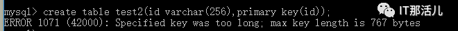 ##索引列大于767 bytes时报错,组合索引列的总长度大于3072 bytes时报错