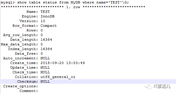 ▼▼▼mysql> show table status from MyDB where name='TEST'\G;