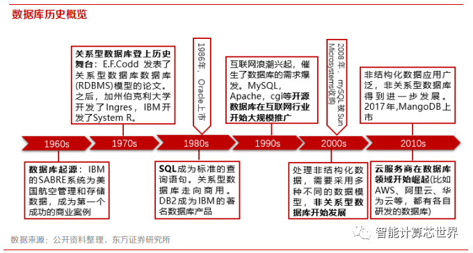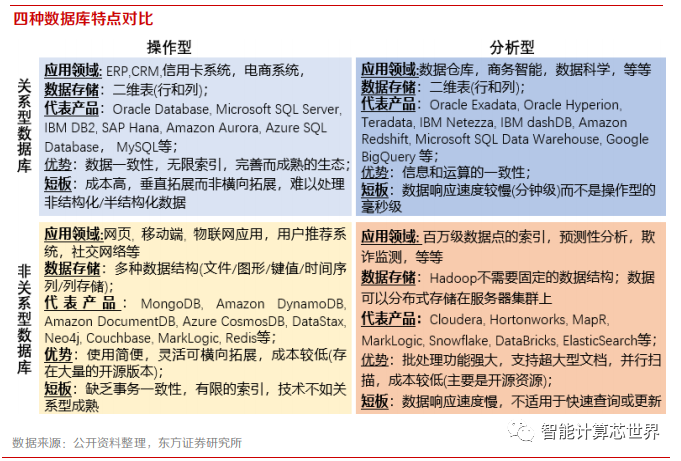 2)大数据时代,非结构化数据处理需求以及高并行运算带来数据库行业技术革新,国产厂商存在弯道加速的机会(不一定短期内可以超车);