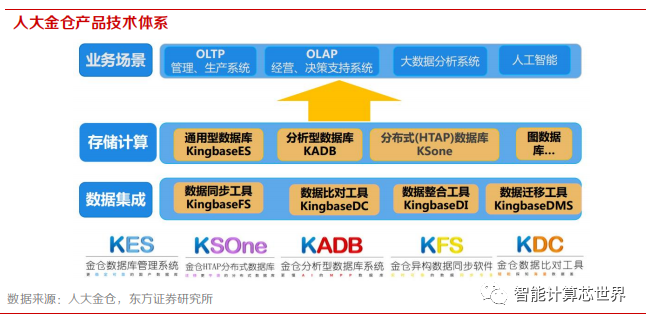 人大金仓产品技术体系:经过近 20 年的发展,人大金仓构建了覆盖数据管理全生命周期、全技术栈的产品、服务和解决方案体系,产品广泛应用于电子政务、国防军工、电力、金融等行业。