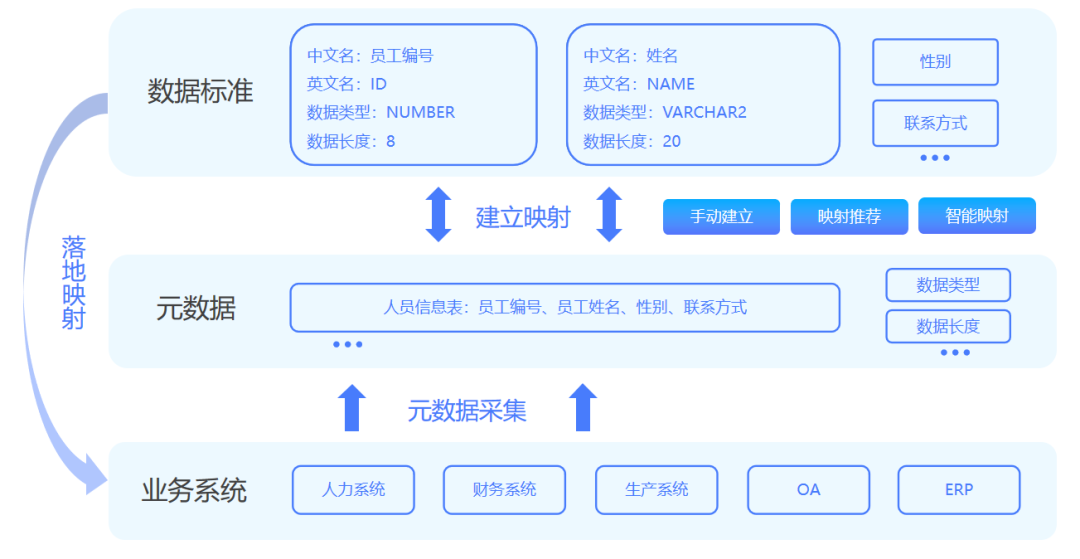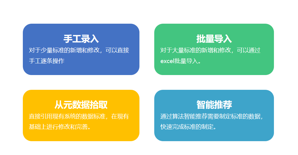 确定主数据依赖于企业对于业务需求的理解和相应“黄金数据”的定义。通常来说,每个主数据主题域都有自己专用的记录系统,并且分散在各个业务系统中。人工智能相关技术可以帮助我们在所有数据中筛选出频繁出现或流动的数据,同时快速确定主数据的可靠与可信数据来源。睿治数据治理平台可自动识别主数据,帮助重复数据自动匹配和合并,构建完整的主数据视图。睿治数据治理平台通过灵活多样的主数据建模方式,快速构建各类主数据标准化模型,满足不同角色所需信息视图,并可详细定义分类属性及填写规范,有效保证主数据标准的固化。内置多种类型主数据成熟模型,即改即用。(3)数据标准管理