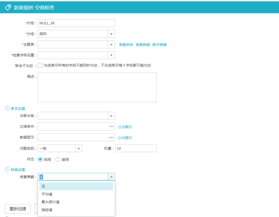 数据质量是保证数据应用的基础。对于任何一个企业而言,在实施数据质量提升方案之前,需要依据不同的业务规则和业务期望选择合适的数据质量指标体系,并进行数据的清洗。睿治数据治理平台可根据数据标准快速新建质量规则。睿治平台内置数理统计算法、绑定机器学习算法,实现自动探查数据质量,同时支持智能修复。睿治数据治理平台支持对检查出来有问题的数据按照一定的规则进行智能修复,可以支持对空值、值域、规范(身份证、日期、全半角)这些规则进行修复,方便用户对数据的整改。(5)数据资产管理