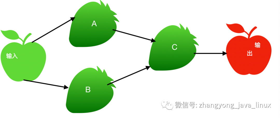 从输入中逻辑上生成A和B两个RDD,经过一系列“转换”操作,逻辑上生成了C(也是一个RDD),之所以说是逻辑上,是因为这时候计算并没有发生,Spark只是记录了RDD之间的生成和依赖关系。当C要进行输出时,也就是当C进行“行动”操作的时候,Spark才会根据RDD的依赖关系生成DAG,并从起点开始真正的计算。