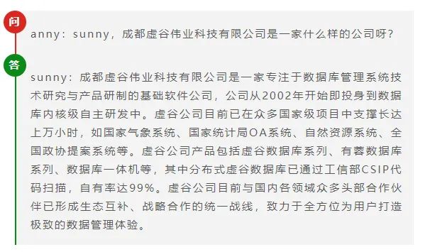 成都虚谷伟业科技有限公司(简称:虚谷伟业)研发的虚谷数据库V11.0,是一款大型、高性能、高安全、高可靠,并具有完全自主知识产权的关系型数据库管理软件。虚谷数据库V11.0采用分布式架构,具有分布式存储、并行计算、高性能;多副本容错,数据安全可靠;弹性扩展,动态伸缩,随需而变;成本低廉,稳定高效,易管理等特点。支持OLTP、OLAP及混合型应用。