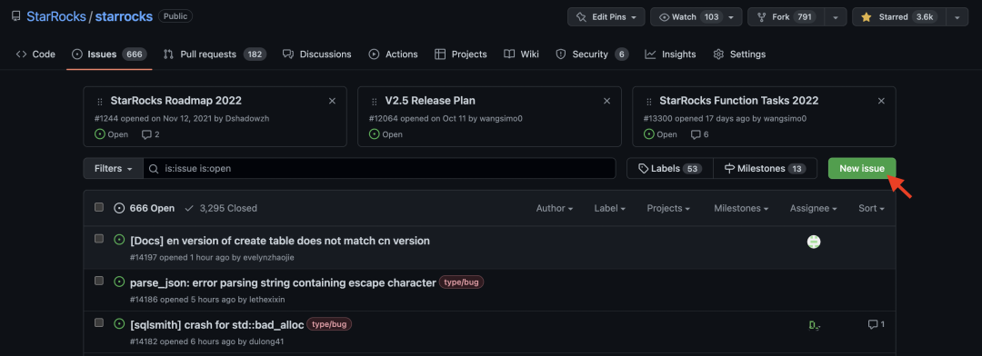 2021 年 9 月,StarRocks 源代码开放,在 GitHub 上的星数已超 3600 个。StarRocks 的全球社区飞速成长,至今已有超 200 位贡献者,社群用户近万人,吸引几十家国内外行业头部企业参与共建。
