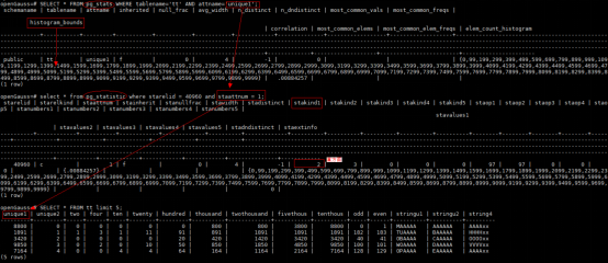 Column-Level列级别统计信息,存储在系统表pg_statistics,也可以使用视图pg_stats查看数据。